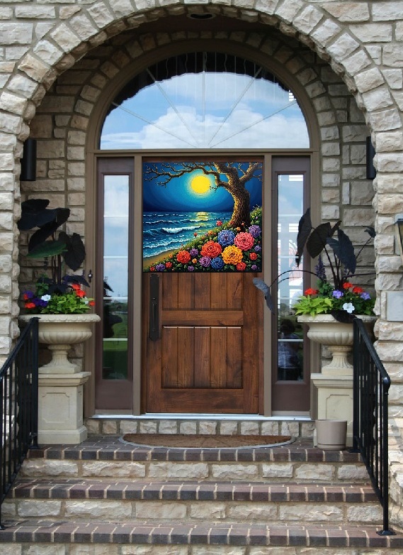 And then......An advertisement on the Microsoft opening page came out of the blue on my screen, and there it was, a different method to produce vivid colors with a different process. And it could withstand the heat in the desert, if you decided to place it in 120 degree weather, as there is in the Coachella Valley. I had an idea from the "past" of placing "Murals" in lieu of House Front Doors designs or just attach a mural on the open space on the top half of the front door.